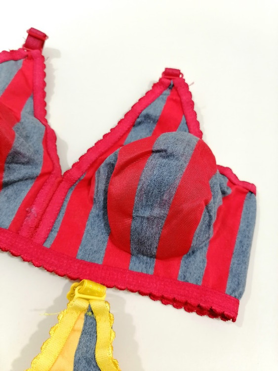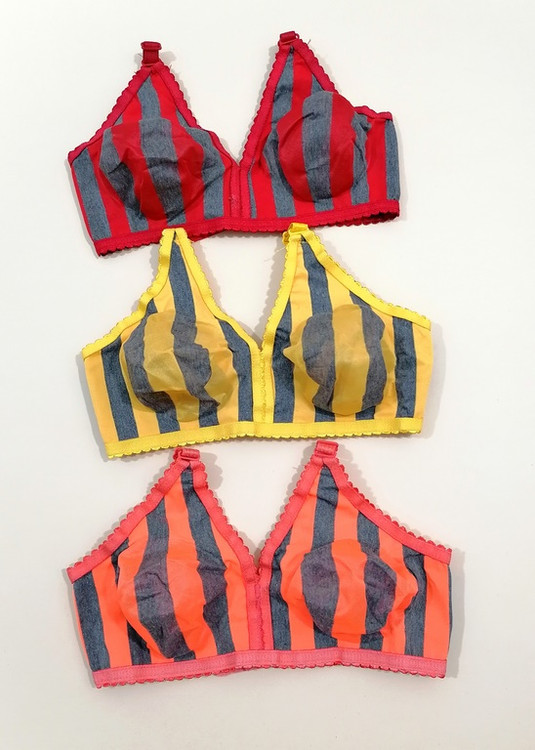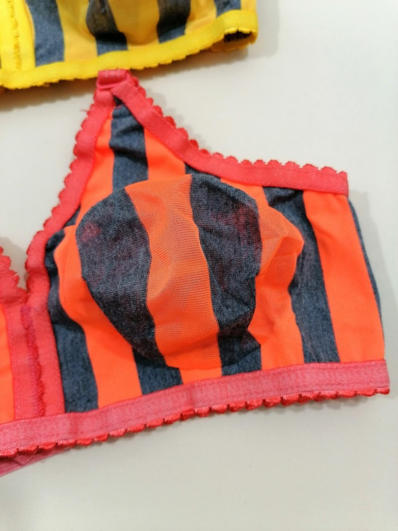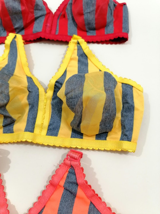 کد132 سوتین پرسی توری راه راه بدون فنر