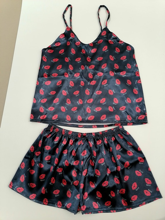 کد135 ست لباس خواب تاپ وشورتک ساتن طرحدار