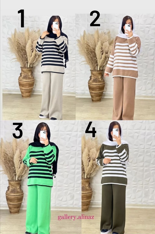 کد 146 ست بلوزشلواربگ بافت راه راه