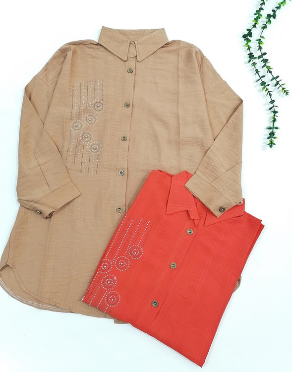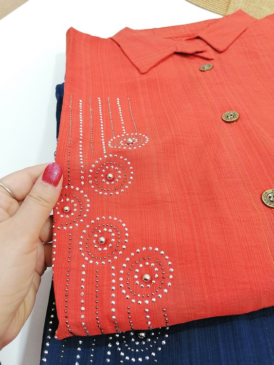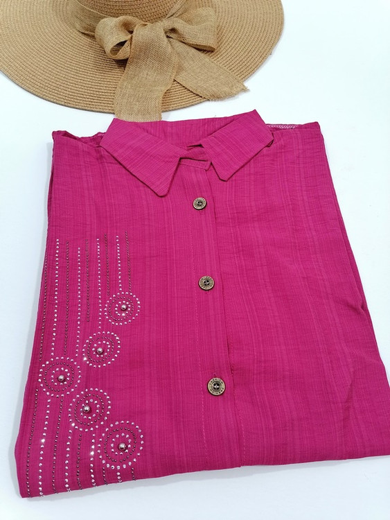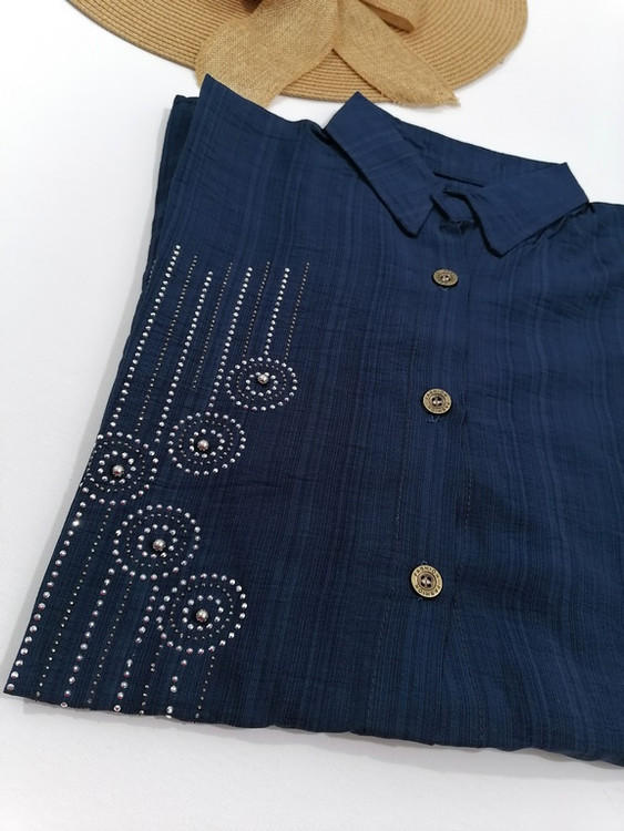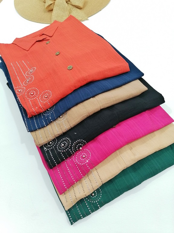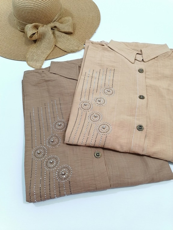 کد173 شومیزمانتویی جلودکمه بابوس2نخ نگین کاری شده
