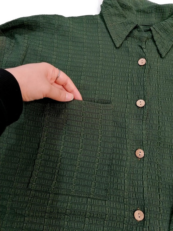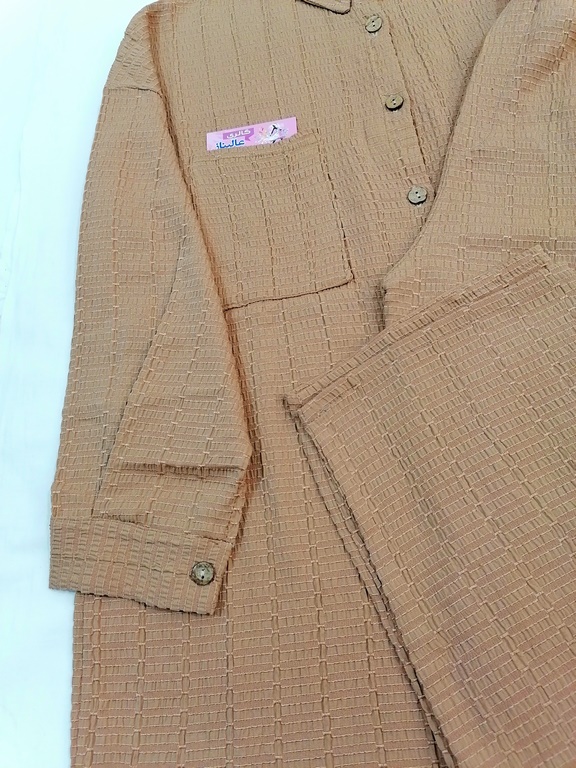 ست شومیز مانتویی جلودکمه وتک جیب با شلوار راسته وگشاد