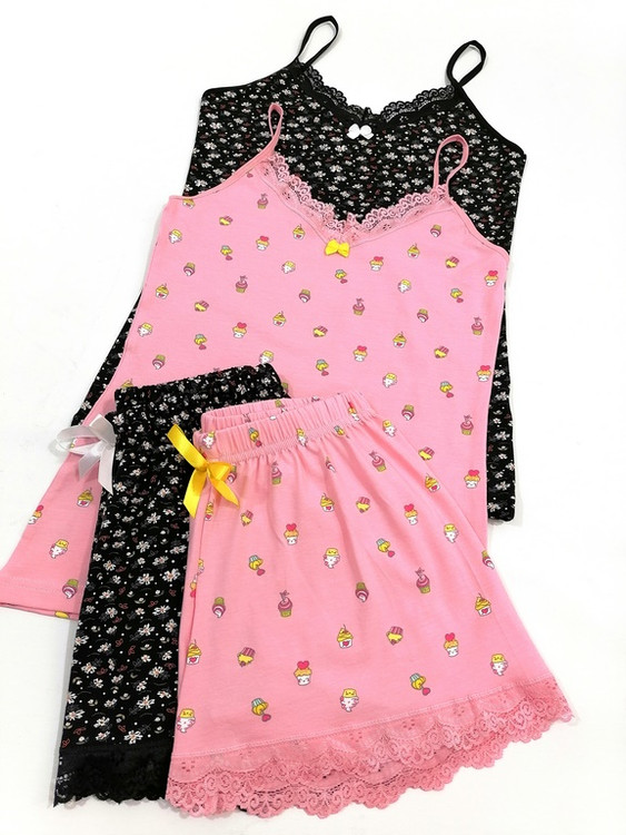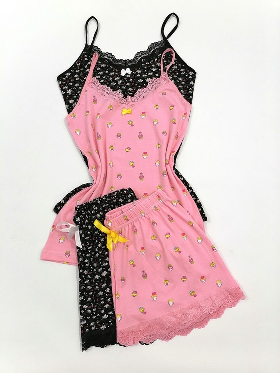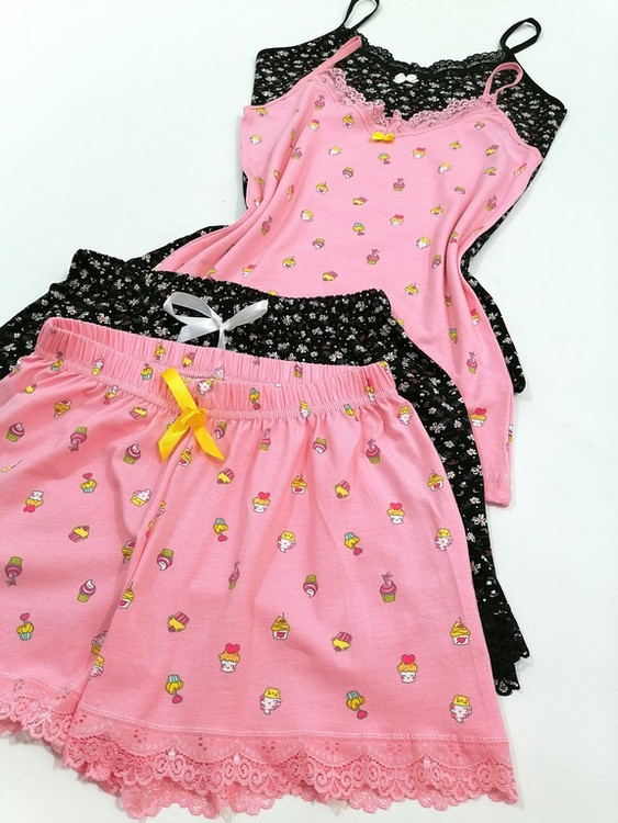ست تاپ و شورتک نخ و پنبه ترک وارداتی لبه گیپوری اعلا