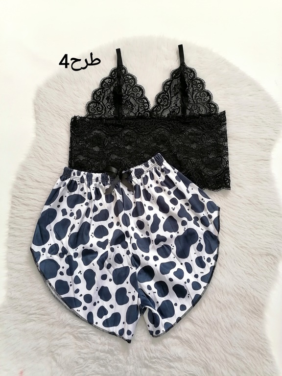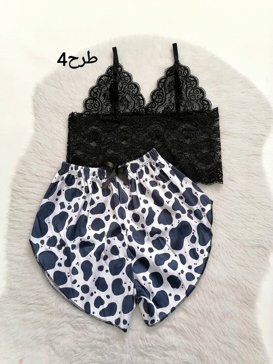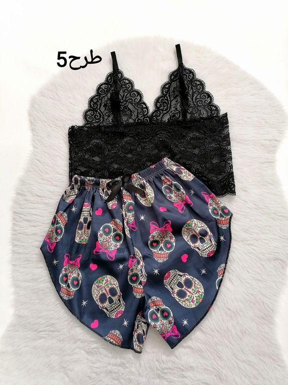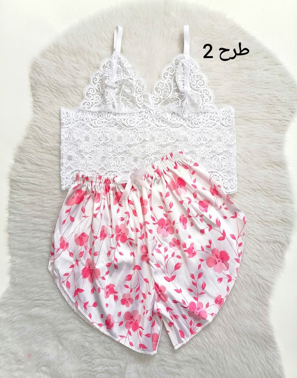 کد197 ست لباس خواب تاپ وشورتک گیپور وساتن