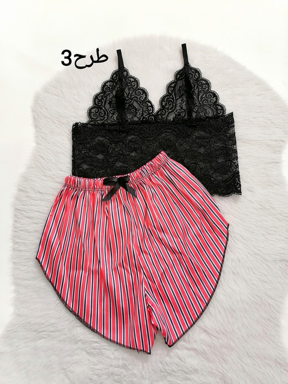 ست لباس خواب تاپ گیپور و شورتک ساتن