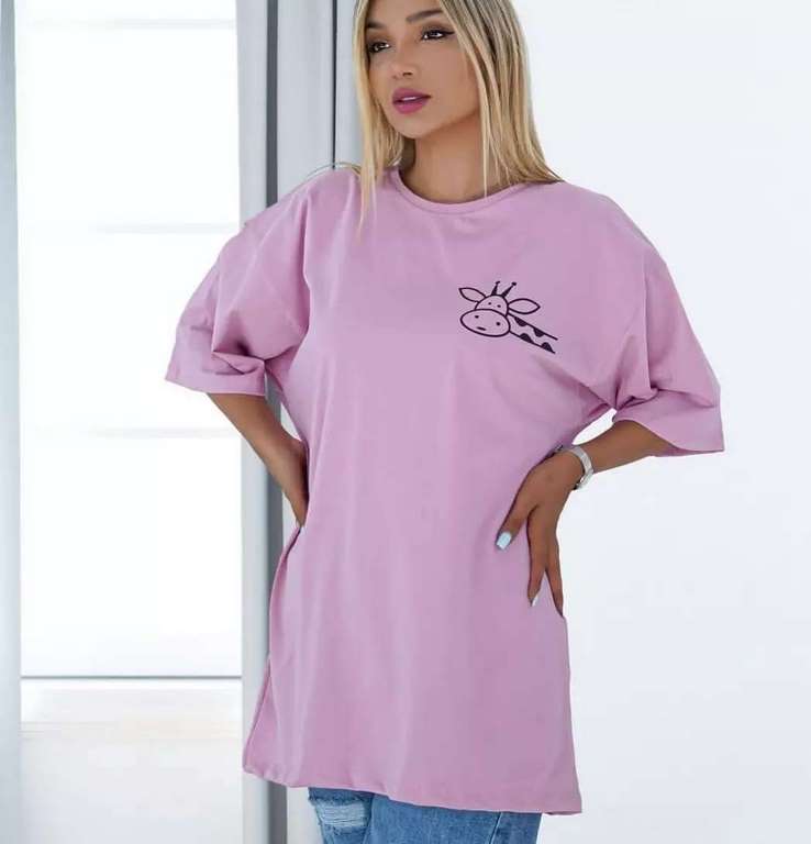 تیشرت نخ وپنبه لانگ طرح زرافه اعلا