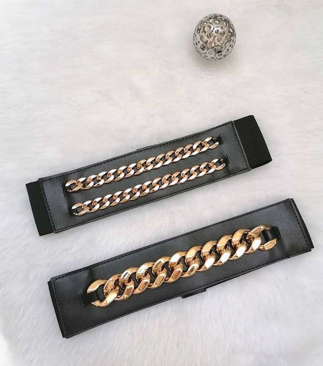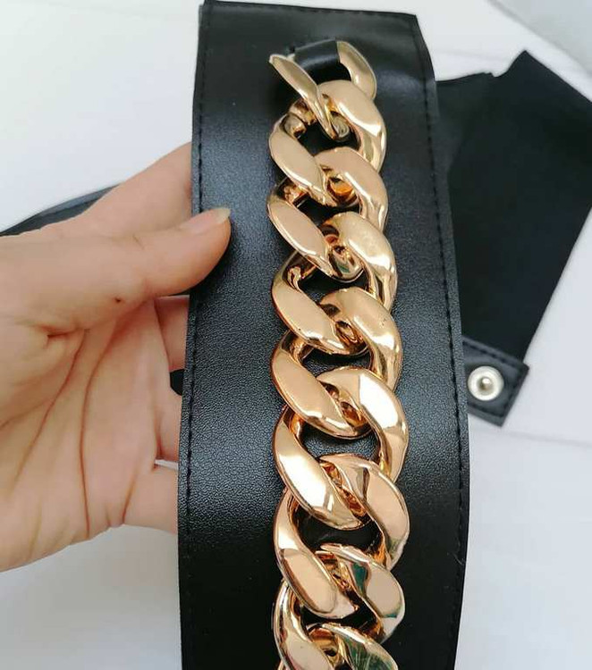 کمربند کارتیر زنجیردار نقره ای پشت کشی و دکمه خور